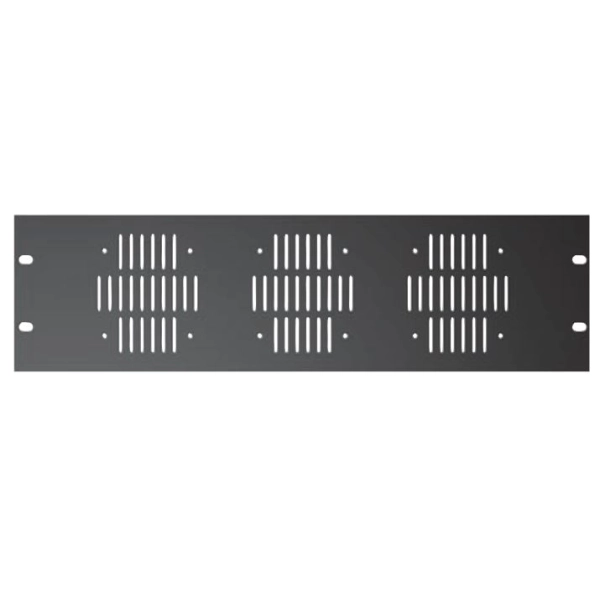 Изготовлена из металла черного цвета. Имеет вентиляционные отверстия. Все монтажные отверстия оптимизированы для болтов M6. Совместима с любыми рэковыми конструкциями — стойки, кейсы, шкафы. Монтажный размер 3U.